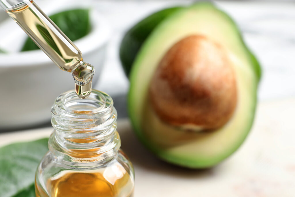 El aguacate tiene un gran aporte de vitaminas beneficiosas para la piel como la A, B6, C, y E . Rico en emolientes, minerales y antioxidantes para la piel debido a su rápida absorción y suave sensación